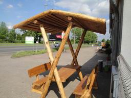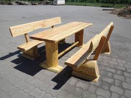 Massive handgefertigte Gartenmöbel aus wetterfestem Lärchenholz.